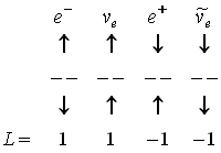 где стрелка внизу показывает направление внутреннего движения от центра или к центру, верхняя стрелка, соответственно, направление внешнего движения. Представим эти структуры, как лептоны нулевого уровня и присвоим им соответствующие значения лептонного заряда L.