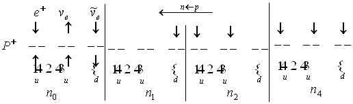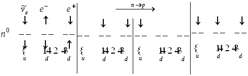 Для составных частиц, например нуклонов, структура будет выглядеть следующим образом: