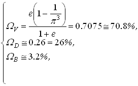 Согласно данных тех же наблюдений, отношение плотности вакуума к критической плотности, т.е. его вклад в общую массу, составляет