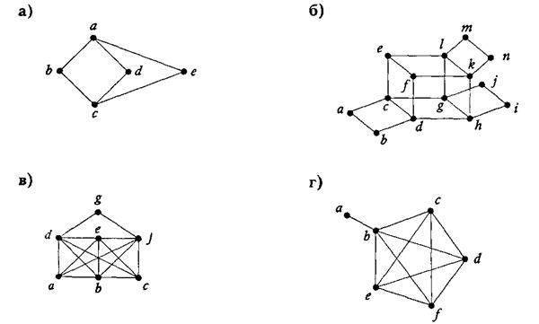 в) Этот граф связный и только две вершины (с и j) имеют нечётную степень, значит, граф имеет собственный эйлеров путь.