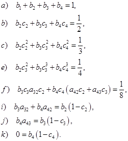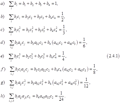 Подойдем теперь вплотную к определению 4-стадийных методов Рунге-Кутты (2.3.1) с таким расчетом, чтобы они имели порядок 4. Для этого необходимо вычислить производные порядков 1, 2, 3 и 4 от