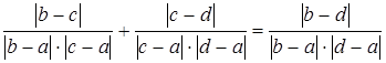 □ Пусть точки A ,B ,C ,D имеют координаты a , b , c , d соответственно.