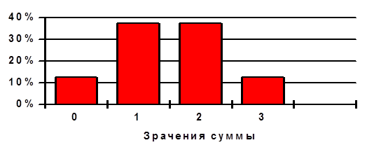 Ясно, что эта сумма может принимать любое значение в диапазоне 0…3, но всё же - каковы вероятности P(S=0), P(S=1), P(S=2), P(S=3); что можно о них сказать, кроме очевидного вывода - их сумма равна 1?