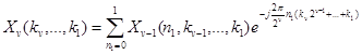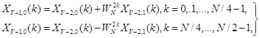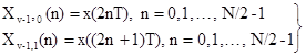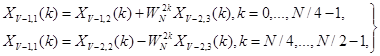 Так как Xv (k) должно быть определено для N точек (k=0, 1, ..., N-1) , а Хv-1,0 (k) и Хv-1,1 (k) определяются толькo для N/2 точек (k=0, 1,..., N/2-1), доопределим (2.3) для значений k=N/2, N/2+1,...,N-1; учитывая, что Хv-1,0 (k) и Хv-1,1 (k) периодические функции с периодом Н/2, можно записать
