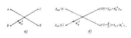 Формулы (2.3) и (3.4) дают алгоритм вычисления N-точечной ДПФ через (N/2)-точечных ДПФ. Этот алгоритм можно представить направленным графом, имеющим вид «бабочки»