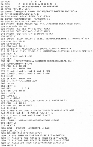 3. Программа и пример реализации алгоритма БПФ с прореживанием по времени
