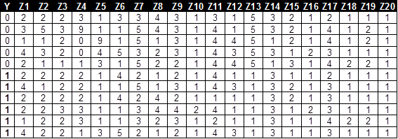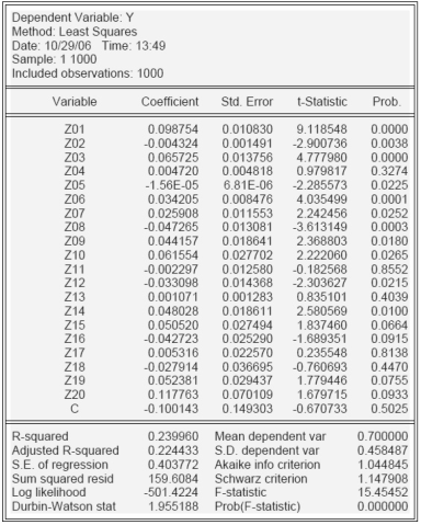 Построим регрессию Y на факторы Z1-Z20 по методу линейной регрессии (табл.14.)