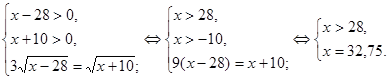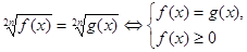- некоторые положительные числа. Такие уравнения не являются иррациональными уравнениями, т.к. не содержат переменной под знаком радикала, но все, же разберем их решение в данном пункте.