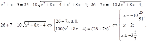 Возведем обе части полученного уравнения в квадрат. ![]()