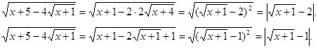 Если подкоренное выражение представляет собой полный квадрат, то можно в двойном радикале освободиться от внешнего радикала, воспользовавшись равенством