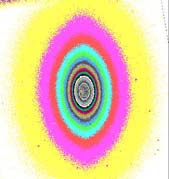 Рис. 2 – Линии равной поверхностной яркости (изофоты), построенные для изображения эллиптической галактики NGC 821, полученного КТХ. Видны избытки «носики» на изофотах вблизи их большой оси. |