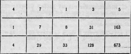Каждый столбец дает решение проблемы календаря. Например, первый столбец дает для длины года приближенное значение 365
