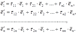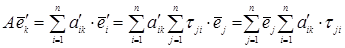 Формула зв’язку між векторами старого і нового базисів у матричному записі має вигляд: