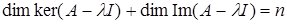 Оскільки максимальна кількість лінійно незалежних власних векторів менша за вимірність простору, то власні вектори не утворюють базис простору і таким чином матриця не діагоналізуєма.![]()