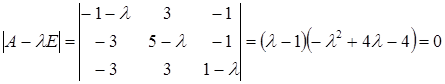 Розв’язання: Складаємо характеристичне рівняння і розв’язавши його знаходимо власні числа: