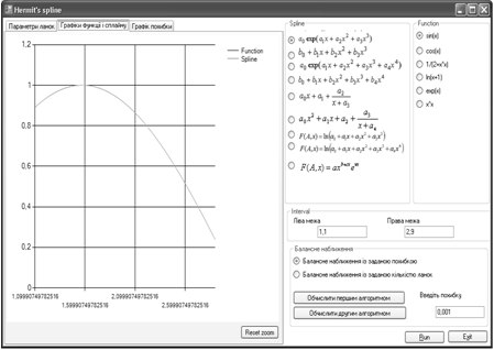 Сімейство цих ермітових сплайнів має ланку, яку подано виразом (1). Оскільки наближаючий вираз (1) не змінює знака, то цим виразом можна наближати функції, що не змінюють знака. Припустимо для конкретності, що