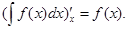 (∫ f(x)dx)′= (F(x)+C)′=f(x). (4)