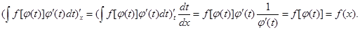 Справедливость последнего равенства легко проверить дифференцированием (дифференциалы от обеих частей равенства равны dF(x)).