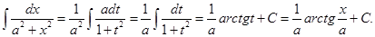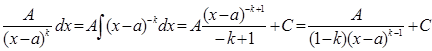 Интегрирование простейших дробей типа (1),(2) и (3) не составляет большой трудности, поэтому мы приведем их интегрирование без каких-либо дополнительных пояснений: