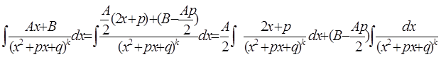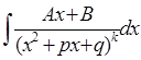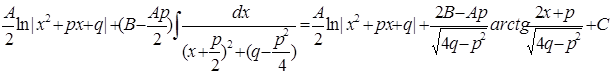 Более сложных вычислений требует интегрирование простейших дробей (4) типа. Пусть нам дан интеграл такого типа: