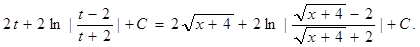 Первый интеграл берется подстановкой