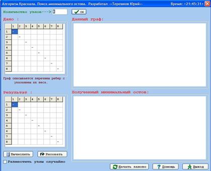 1) Всеми авторскими правами на "Алгоритм Краскала" эксклюзивно владеет автор программы – Терешков Юрий Игоревич.