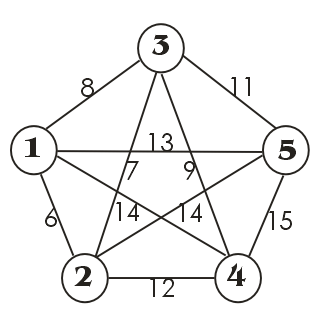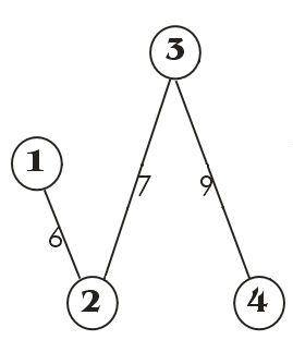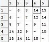 Матрица смежности является симметричной и достаточно просто может использоваться для ввода и обработки на ЭВМ. Для случая взвешенного графа вместо 1 используется значение весовой функции, и такая матрица называется матрицей весов. В поставленной задаче будем использовать матрицу весов.