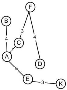 3.Среди ребер, инцидентных помеченным вершинам, за исключением ребер остова и ребер, образующих в остове цикл, находят ребро минимального веса для остова. Помечают новую вершину, инцидентную этому ребру, и переходят к шагу 2.