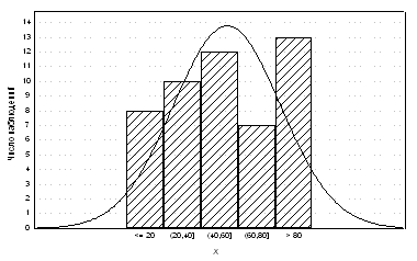 Рис. 1. Пример сравнения гистограммы и кривой нормальной плотности
