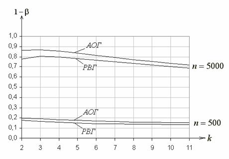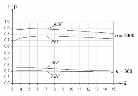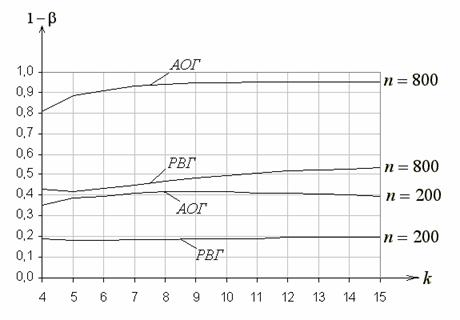 Рис. 7 иллюстрирует поведение функции мощности критерия типа