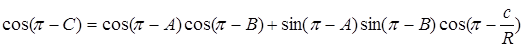 Припустимо тепер, що в трикутнику лінійні розміри a, b, c малі в порівнянні з радіусом кривизни k простору. Це припущення свідомо виконується для трикутників з малими лінійними розмірами або в просторі досить малої кривизни 1/k2 . Розкладаючи в статечні ряди гіперболічні функції у формулі (3.26), що виражає теорему косинусів у геометрії Лобачевского, одержимо