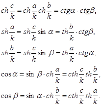 т. е. сторони трикутника пропорційні синусам протилежних кутів. Останні три рівності дозволяють затверджувати, що формули геометрії Лобачевского для фігур з малими лінійними розмірами збігаються з відповідними формулами евклідової геометрії.