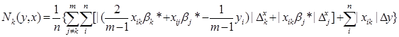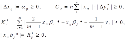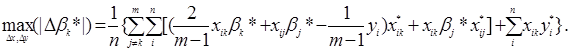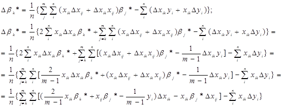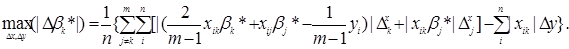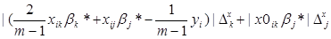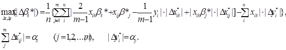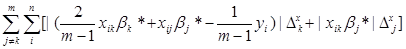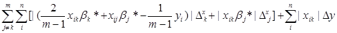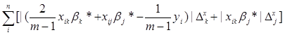 pod_sum_vnutr[i]:=abs(2*matrica_X[i,k]*vector_beta[k,1]/(m-1) +matrica_X[i,j]*vector_beta[j,1]-vektor_Y[i,1]/(m-1))*pogr_X[k] +abs(matrica_X[i,k]*vector_beta[j,1])*pogr_X[j]