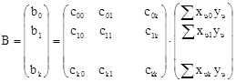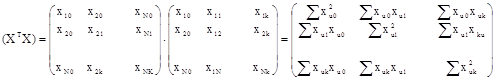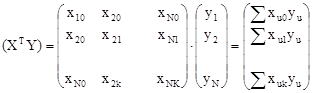 Умножив транспонированную матрицу X на матрицу Y, получим: