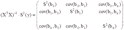 Все статистические свойства коэффициентов линии регрессии определяется матрицей дисперсий ковариаций.