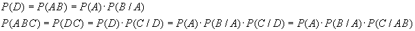 2. Событие C произведением A и B, если оно состоит из всех элементарных событий, входящих и в A, и в B. Произведением произвольного числа событий называется событие состоящее из элементарных событий, входящих во все Ai, i=1, ..., m.