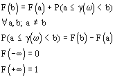 Над наблюдаемым полем событий F задается счетно-аддитивная мера - числовая скалярная функция, элементами которой являются элементы поля F, т.е. события. Она удовлетворяет следующим трем условиям-аксиомам теории вероятности.