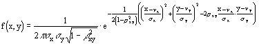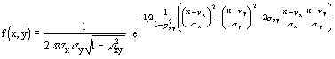 Двумерная случайная величина XY распределена нормально, если ее плотность вероятности f(x,y) имеет вид
