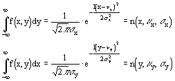 Все одномерные плотности вероятности - это плотности вероятности одномерной нормальной случайной величины с параметрами, определяемыми координатами вектора X и главной диагональю ковариационной матрицы B. Кроме того, подвектор вектора