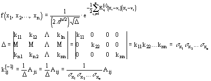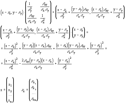 n-мерная непрерывная случайная величина имеет нормальное распределение, если ее многомерная плотность вероятности в матричном виде