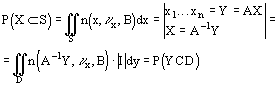Рассмотрим произвольную область S, принадлежащую пространству элементарных событий случайной многомерной величины X. Ей соответствует область D в пространстве элементарных событий случайного вектора Y. При этом