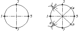 Рисунок 1.11 – Ділення кола на чотири та вісім рівних частин