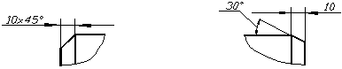 Розміри фасок, які виконуються під кутом 45о , наносять так, як показано на рисунку 1.37 а, розміри фасок під іншими кутами позначають за загальними правилами – лінійним та кутовим розмірами (рис. 1.37 б).