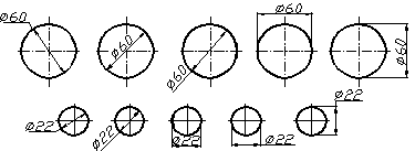 На рисунку 1.41 наведені різні варіанти нанесення розмірів діаметрів.