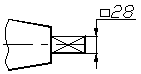 Перед розмірним числом поверхні, яка має в перерізі форму квадрата, ставлять знак квадрата □ , розмір якого дорівнює висоті маленької літери. Приклад позначення розміру квадрата наведений на рисунку 1.44.