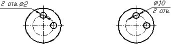 Кількість однакових отворів зазначають над розмірною лінією перед позначеним діаметром отвору або під поличкою (рисунок 1.47). Перевагу віддають першому варіанту.