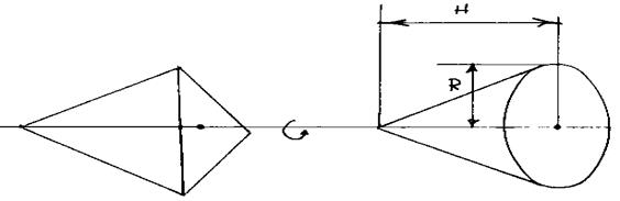 Если прямая (образующая поверхности) пересекает ось вращения, то получается коническая поверхность.