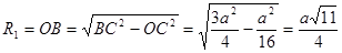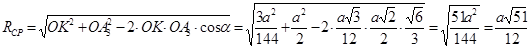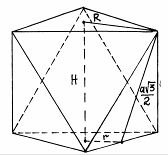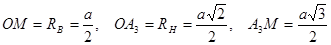 RВ = RН = R – радиус окружности, описанной около равностороннего треугольника со стороной а (грани октаэдра). Следовательно,