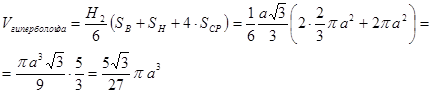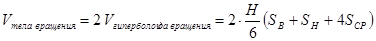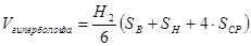 Объем гиперболоида найдем по формуле Симпсона: