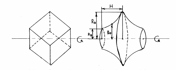 Так как часть оси вращения, заключенная внутри тела вращения (H) – суть диагональ куба, следовательно,